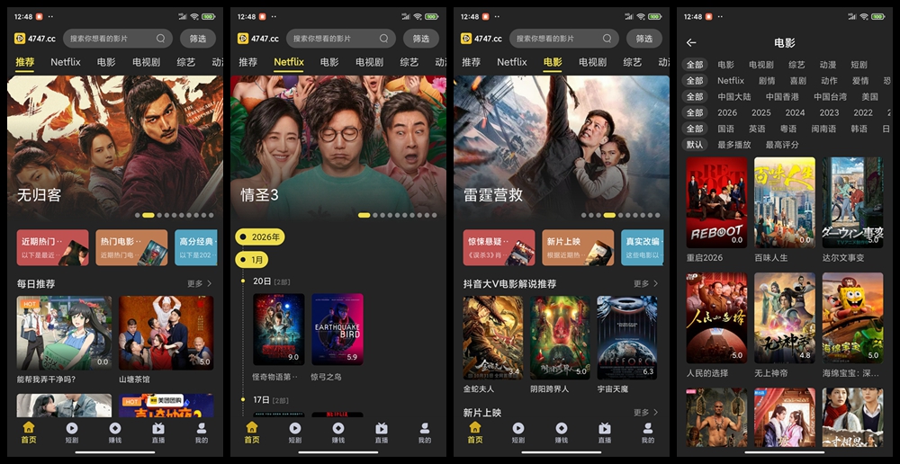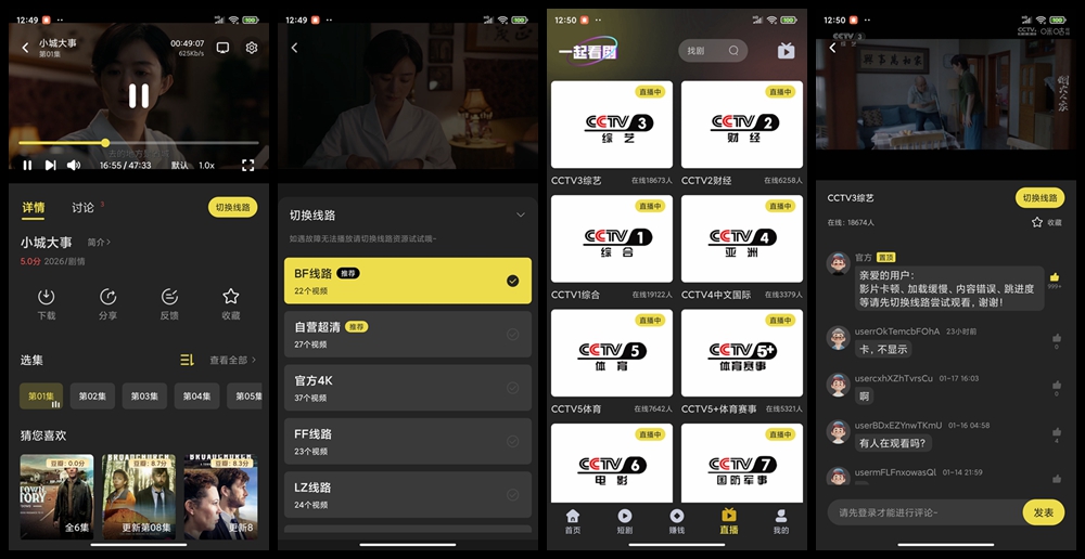 一款全平台影视聚合应用,主打无广告、永久免费、4K超清画质三大核心体验。软件不仅整合了主流平台(含部分 Netflix 同源内容)的电影、电视剧、综艺与动漫资源,还独家内置多条自营4K解析线路,并扩展支持短剧专区与电视频道直播,满足用户从长视频到实时内容的多元需求。